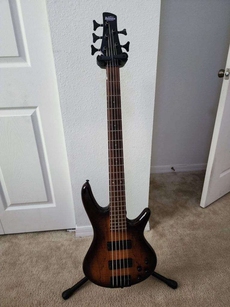 This bass is now playing and sounding the best it can be! Overall this is a great sounding and playing bass for the price point. I love the spalted maple top on this one. It even has a bit of flame figuring within it! The color really pops in the light too. Ibanez calls this color Brown Burst.