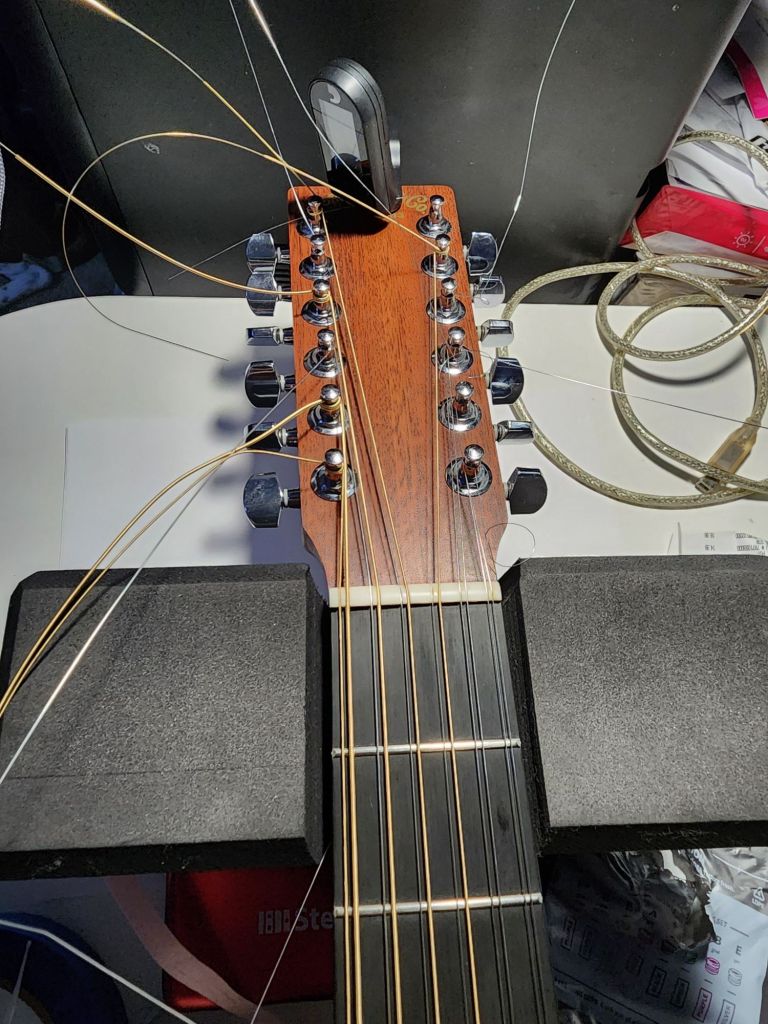 Today, a Martin Custom X Series 12 String Dreadnought acoustic guitar came into the shop for a setup. This guitar’s action was wildy high, measured in at 10/64ths of an inch off the 12th fret, it was super difficult to play! Luckily, the client brought the guitar to the right tech, and I was able to get the guitar playing beautifly again.