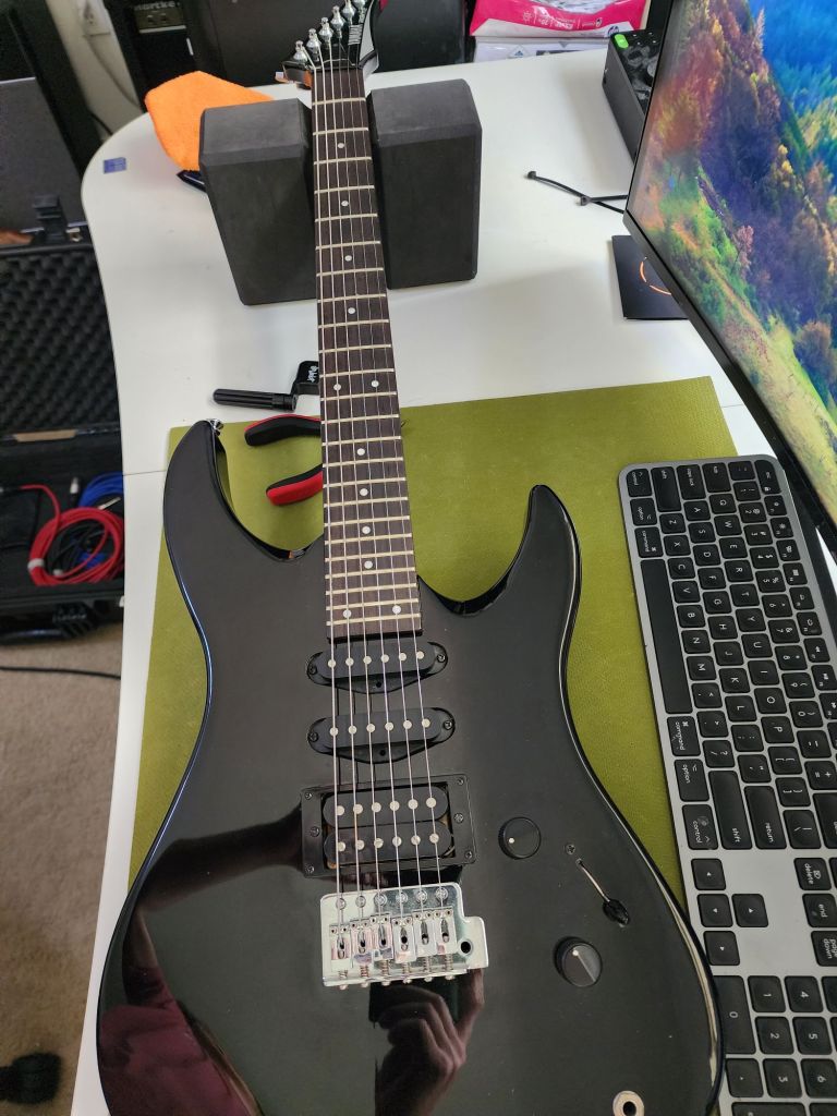 Today I had in a late 1980s Yamaha RGX112 guitar. This guitar was inherited to the client and they wanted to get it playing well so they can play it. The guitar is basically a super strat of sorts, with the 24 fret fretboard, 16 inch fretboard radius, and neck heel contour. It is really fun to play!